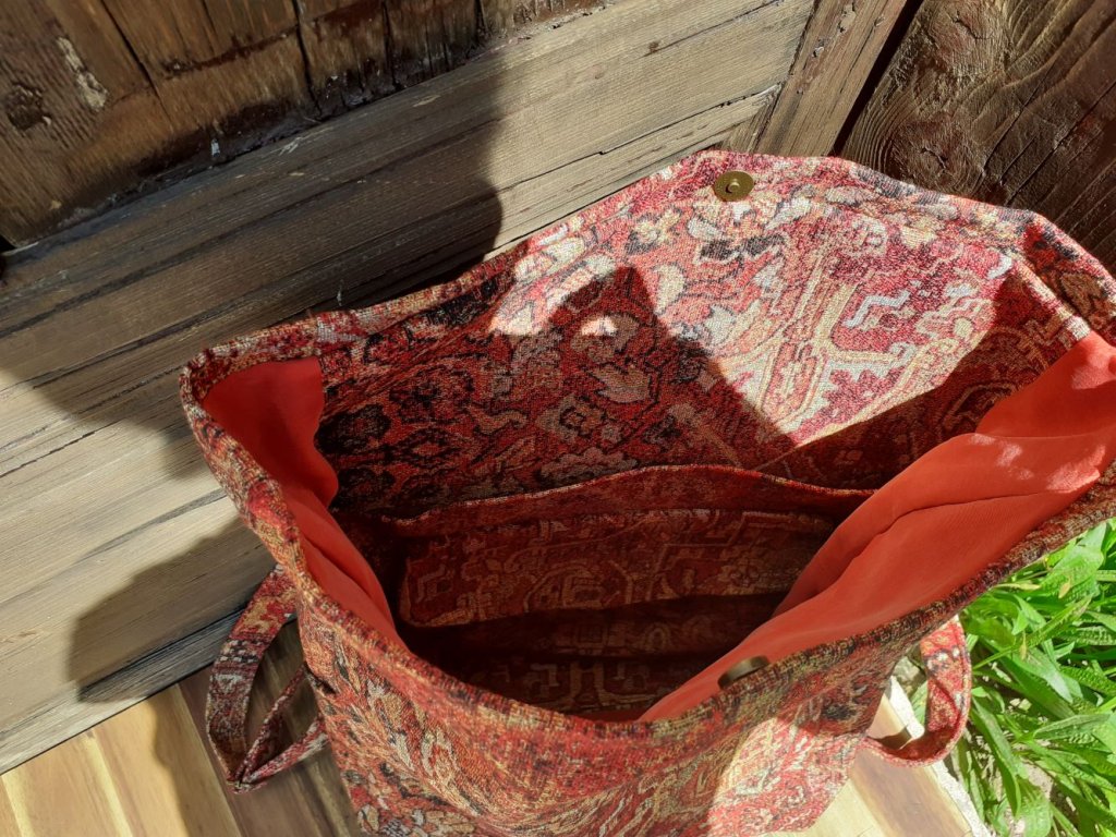 Batoh, který Vás ozdobí při romantických toulkách po krajině i v próze všedních dní. Je ušit ze zelené gobelínové látky. Uvnitř má batoh při zpevněné zádové straně vnitřní pevný oddíl na dokumenty A4. Na tomto oddílu je kapsa s klopou na drobnosti. Po stranách batohu jsou jednoduché kapsy na zbytnosti, které je třeba mít po ruce. Klopa batohu je zajištěna koženým páskem s přezkou. Popruhy z gobelínové látky s posunovačem pro nastavení délky. Batoh zdobí kovová ozdoba v odstínu staromosaz nebo Klíč k romantice dle varianty.